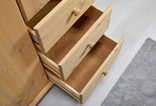 | Tiroir | Face avant: Pin massif, Sommier: HDF (panneau de fibres haute densité)Les panneaux HDF consistent de fibres de bois coupés très fins, collés sous pression., Côté: Pin massif, Dossier: Pin massif |