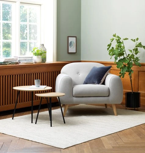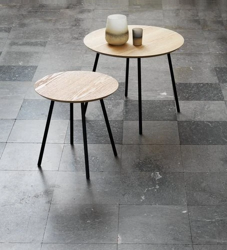 En MDF mélaminé. Cadre et piètement : acier. Ø55 x H45 cm