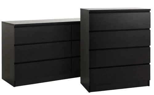 Cadre, face avant, partie supérieure, côtés : panneau de particules. Partie inférieure, face arrière : HDF (panneau fibres haute densité). Surface : mélamine. 4 tiroirs. l81 x H101 x P48 cm