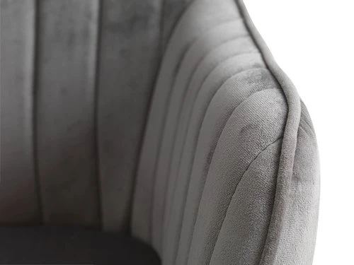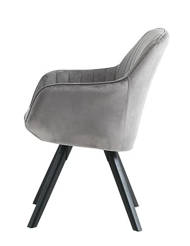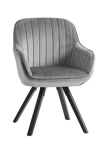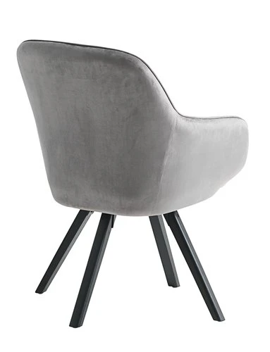 Structure : contreplaqué, acier. Garnissage : 100% mousse de polyester (18/20 kg/m³). Revêtement : polyester. Piètement : bois de caoutchouc massif. Base pivotante. Finition vernie. l58 x H83 x P61 cm