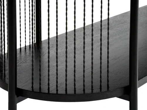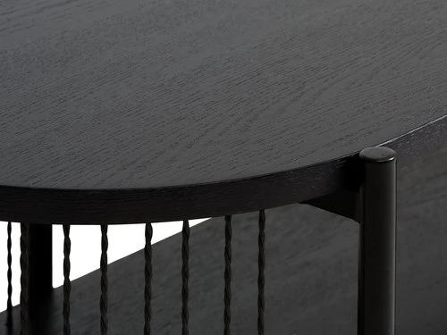 Partie supérieure : MDF4, placage chêne. Côtés : placage papier. Pieds et cadre : métal. l140 x H41 x P40 cm