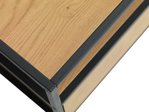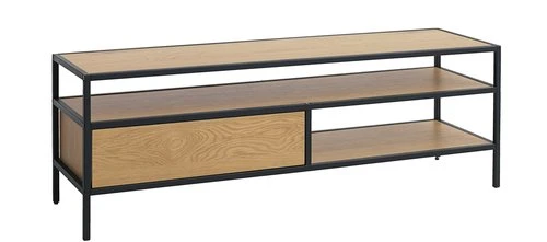 Placage décoratif et acier. Tiroir push-open. l120 x H40 x P33 cm